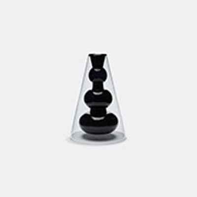 A beautifully elegant marriage of clear borosilicate glass with a series of forms that nod to alchemic apparatus characterizes Tom Dixon's collection of 'Bump' vessels. This tall, conical vase combines a layer of clear glass with an undulating black inner body for a minimalist piece that is designed to enhance the ritualistic instruments of every day hosting. This vessel is ideally sized for tall yet simple floral arrangements.