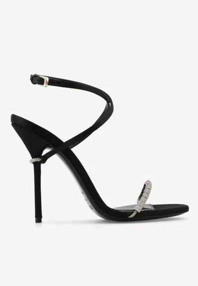 105 Crystal-embellished Wraparound Satin Sandals In Black