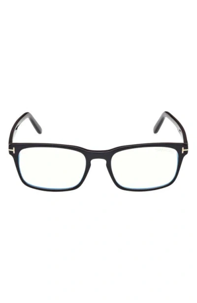 TOM FORD 54mm Rectangular Blue Light Blocking Glasses In Black Eco/t Logo
