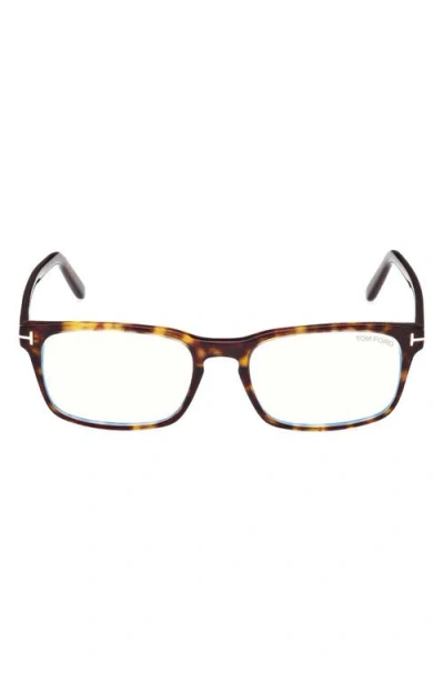 TOM FORD 54mm Rectangular Blue Light Blocking Glasses In Brown