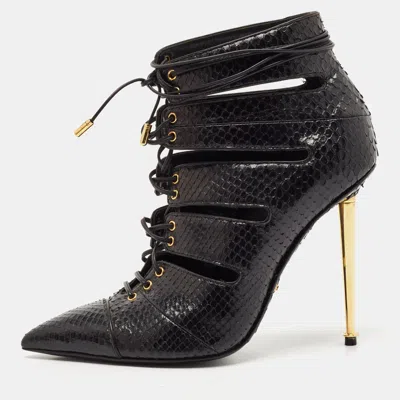 Pre-owned Black Python Leather Ankle Length Boots Size 36.5