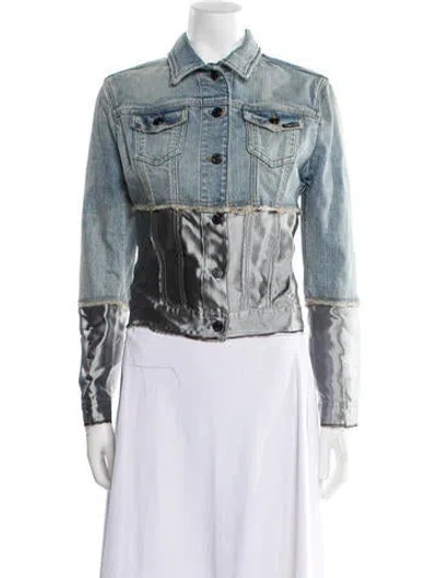 Tom Ford Denim Jacket Blue Raw-Edge Trim & Pointed Collar Flap Pockets & Button Closure Fit: Jackets by Tom Ford typically fit true to size. | Tom Ford Denim Jacket in Blue, Women's US0, IT36 | XS