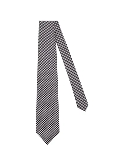 TOM FORD Geometric-pattern Silk Tie In Gray