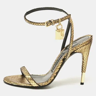 Pre-owned Gold Python Padlock Ankle Wrap Sandals Size 37.5
