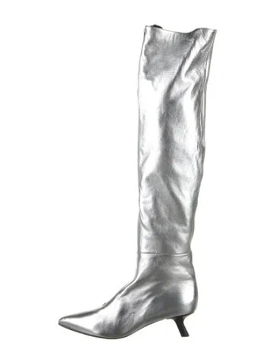 Tom Ford Leather Over-The-Knee Boots Silver Semi-Pointed Toes Fit: Boots by Tom Ford typically run large, consider taking a half size up. Unfortunately, due to restrictions, this item may not be eligible for shipping in all areas. | Tom Ford Leather Boots in Silver, Women's 11