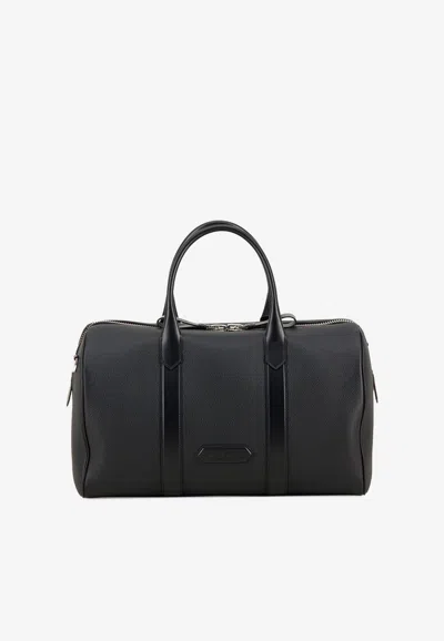 TOM FORD Logo Patch Grained Leather Duffle Bag In Black
