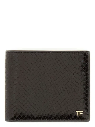 100% LEATHER MADE IN ITALY | Tom Ford Men's Python Print Classic Bifold Wallet in Brown | Size UNI | YM228 Color LCL471G1B011