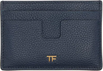 TOM FORD Navy Grain Leather Card Holder In Blue