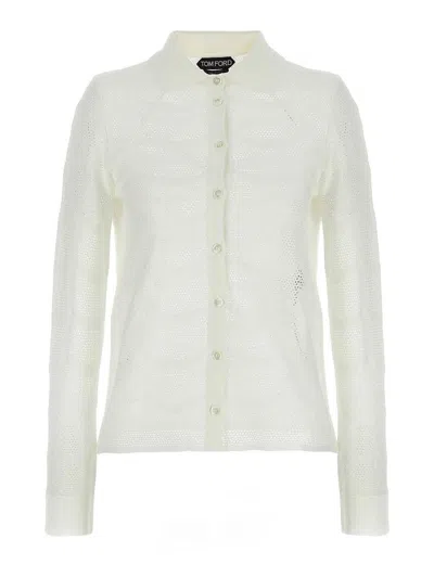 TOM FORD Openwork Silk-cotton Cardigan With Button Closure In White