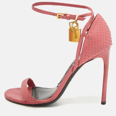 Pre-owned Pink Python Padlock Ankle Strap Sandals Size 37
