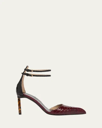 TOM FORD Python-effect Stiletto T-strap Pumps In Red