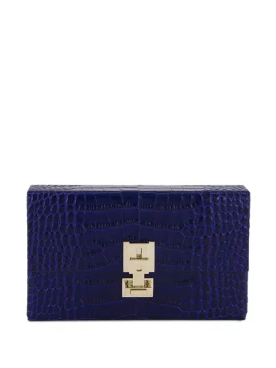 TOM FORD Rectangular Clutch Crocodile Texture Gold Hardware In Blue