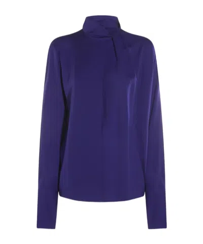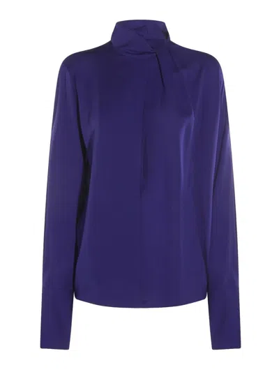 TOM FORD Long Sleeved Satin Blouse In Blue