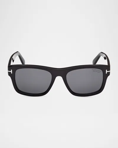 TOM FORD "Smith" rectangular sunglasses crafted from shiny acetate. Eye/bridge/temple (in mm): 5519145 Polarized solidcolored lenses Saddle nose bridge Lasered logo on the left lens Shiny metal T logo on the temples 100% UVA/UVB protection Acetate Made in Italy