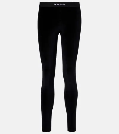 TOM FORD Stretch Lustrous Velour Signature Leggings In Black