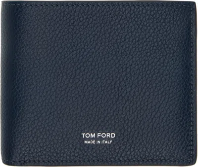 TOM FORD Navy Grain Leather Classic Bifold Wallet In Blue