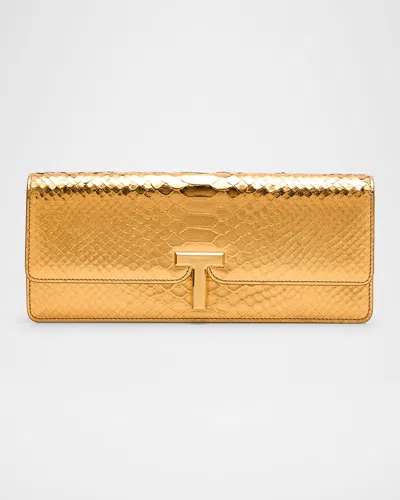 TOM FORD Wallis Metallic Python-embossed Leather Clutch Bag In Light Bronze
