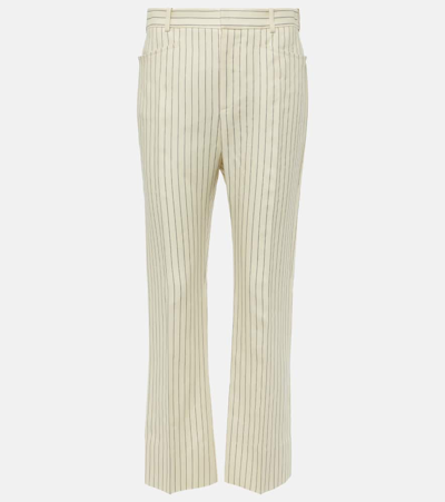 TOM FORD Striped Tailored Pant in Ecru & Black - Cream. Size 40 (also in 38). Self: 79% wool 17% silk 4% polyester Lining: 50% cupro 50% silk. Made in Italy. Dry clean only. TFOF-WP75. PAW558-FAX1158. About the designer: Tom Ford lends a contemporary elegance to all things sartorial. Raised in Santa Fe, Ford made a name for himself as creative director at Gucci, where he transformed the house of fashion into a thriving 21st century brand before going on to launch his own wildly successful label in 2005. Today, Tom Ford is coveted for everything from its statement sunglasses and fine leather accessories to its glamorous dresses and impeccably tailored suits. A Tom Ford design is an exquisite balance of timelessness and modernity.