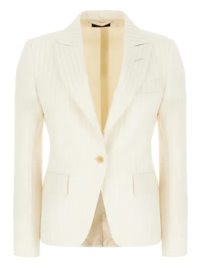 TOM FORD Wool Blend Blazer With Embroidered Back Vent In Neutral