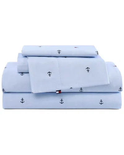 TOMMY HILFIGER 200 Thread Count Anchor & Flag Printed Cotton Percale Sheet Set In Blue