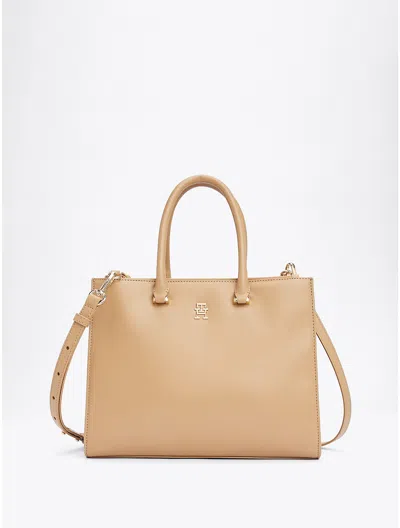 TOMMY HILFIGER Monogram Plaque Medium Tote In Safari Canvas