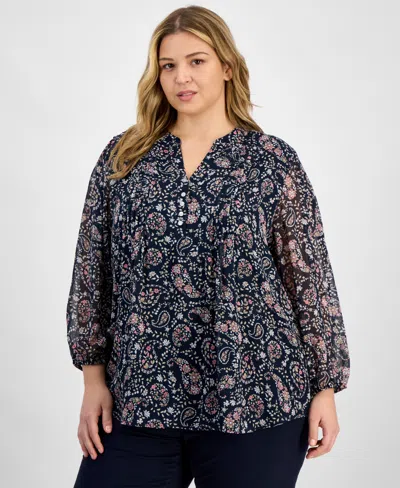 TOMMY HILFIGER Plus Size Paisley Pintuck-front Tunic, Exclusively At Macy's In Multi