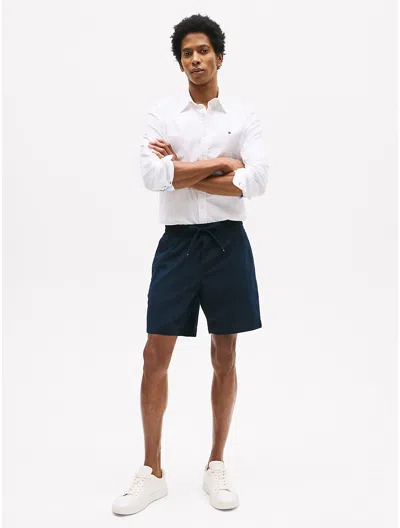 Tommy Hilfiger men's short. These shorts are made from breathable cotton-linen that keeps you cool and comfortable. They feature an elastic drawstring waist for an even more laid-back look. Material: 71% Better Cotton Initiative, 26% Linen, 3% Elastane.