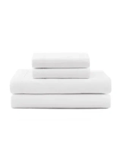 TOMMY HILFIGER Solid 200 Thread Count Hem Stripe Cotton Percale Sheet Set In White