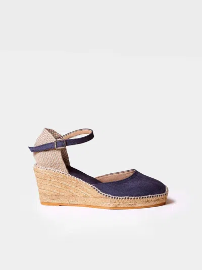 Jute Wedge Espadrilles With Buckle In Blue