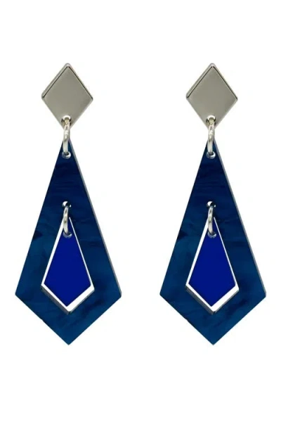 TOOLALLY Art Deco Diamond Earrings In Blue