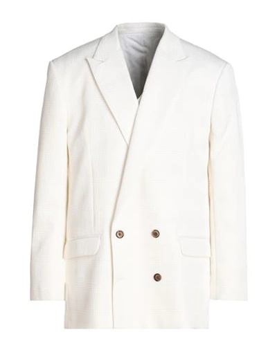 Marbled faux-horn buttons punctuate a double-breasted blazer boasting elaborate stitching and back side vents. 32 1/2" length (size 42R) Nonfunctional four-button cuffs Side vents Lined 76% polyester, 23% cotton, 1% elastane Dry clean Imported
