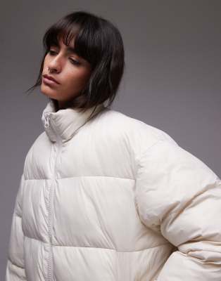 TOPSHOP Bomber Puffer Jacket In Cream-white