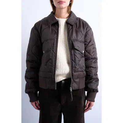TOPSHOP Collared Liner Cropped Bomber Jacket In Brown