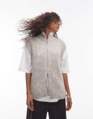 TOPSHOP Knit Longline Zip Up Oversized Tank In Oat-neutral