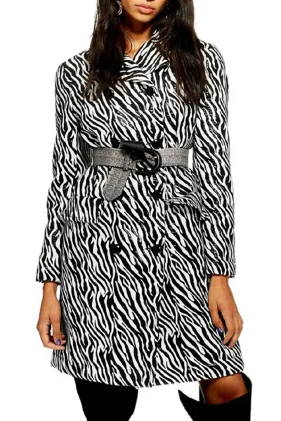 Zebra Print Double Breasted Shimmer Coat In Black/white In Multi