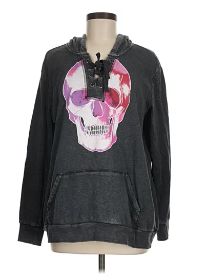 Torrid Pullover Hoodie, Size: Medium. Item Details: Gray, Keyhole Neckline, Long Sleeve, Women's Tops, Cotton/Polyester