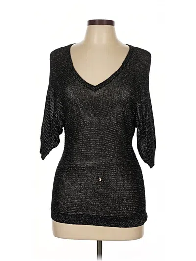 Torrid Pullover Sweater, Size: Large. Item Details: Black, Metallic Pattern, Plunge Neckline, 3/4 Sleeve, Sequins & Rhinestones, Women's Tops