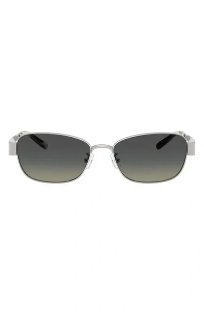 TORY BURCH 55mm Gradient Polarized Rectangular Sunglasses In Silver