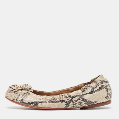 Pre-owned Beige/black Python Embossed Leather Scrunch Ballet Flats Size 37.5