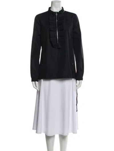 Tory Burch Blazer Black Ruffle Embellishment & Collarless Zip Pockets & Zip Closure Fit: Jackets by Tory Burch typically fit true to size. | Tory Burch Blazer in Black, Women's US 8 | M