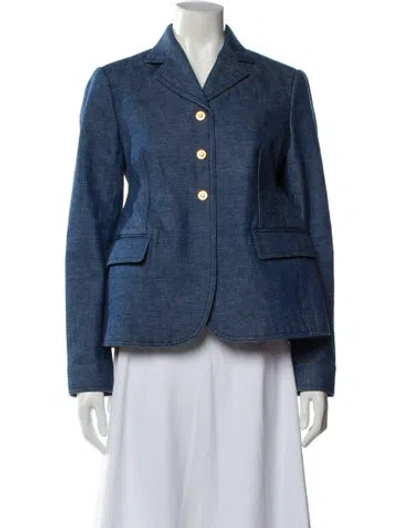 Tory Burch Blazer Blue Pointed Collar Flap Pockets & Button Closure Fit: Jackets by Tory Burch typically fit true to size. | Tory Burch Blazer in Blue, Women's US 4 | S