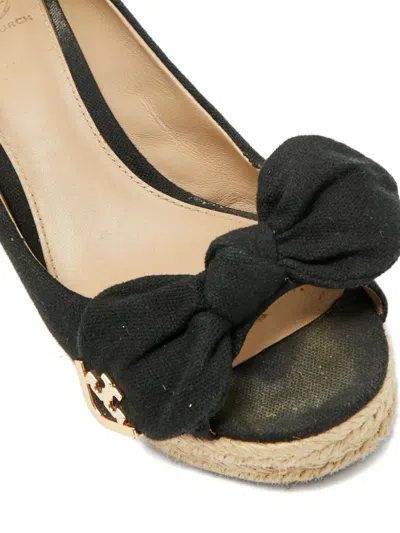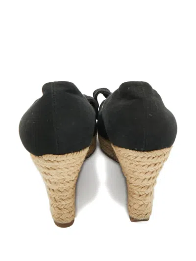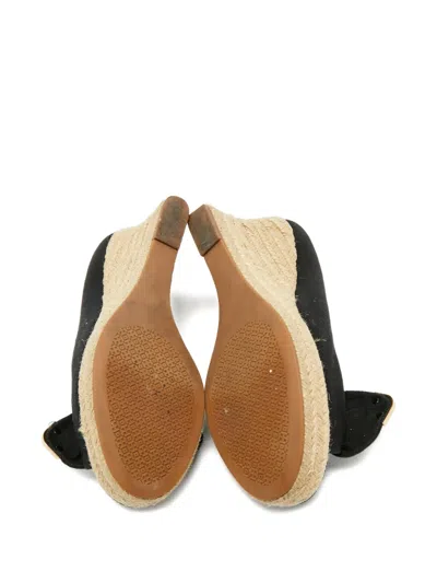 black bow detail espadrille sole wedge heel peep toe logo detail Condition: GOOD. This previously owned and used item is in good condition with minimal signs of use. This may include fading of material or plating and scratches.