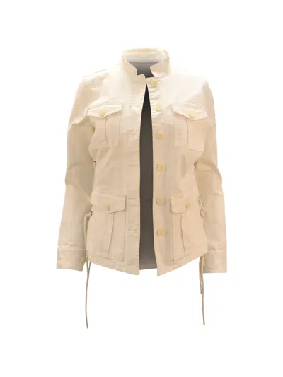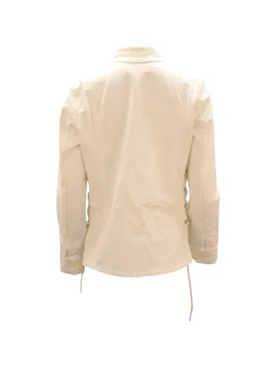 white stand-up collar button fastening flap pockets cotton long sleeves Condition: GOOD. This previously owned and used item is in good condition with minimal signs of use. This may include fading of material or plating and scratches.