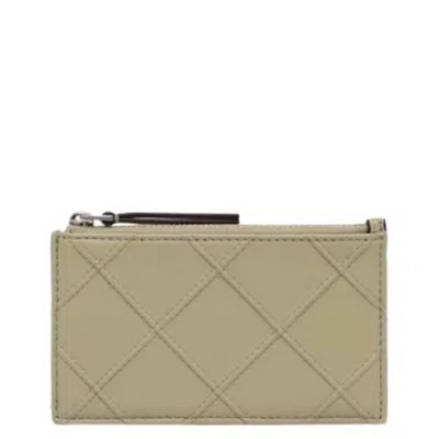 Tory Burch Card Case. SKU: 152602-300. Color: Olive Sprig. Size: H: 3 x L: 5.2. Tory Burch Fleming Soft Diamond-Quilted Card Case. The Card Case, crafted from supple Napa leather, features a zipper closure, pintuck quilting, a bombe Double T, four exterior card slots, and one zipper pocket. Outer: 100% Nappa Leather.