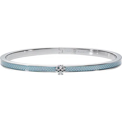 Add Tory's signature sophistication to your wrist stack with a textured-enamel hinge bracelet clasped with iconic double-T logo hardware. Hinge closure Silvertone plate/enamel Imported