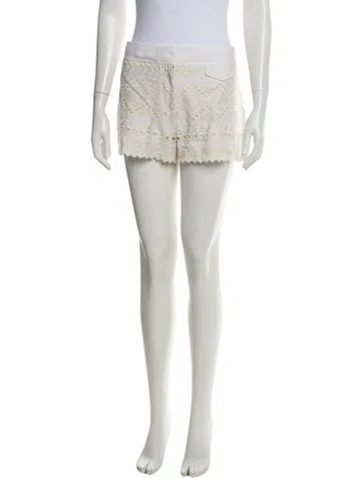 Tory Burch Shorts Neutrals & White Lace Pattern Mid-Rise Slit Pockets Zip & Button Closure Fit: Shorts by Tory Burch typically fit true to size. | Tory Burch Lace Pattern Mini Shorts in Neutrals/White, Women's US 2 | XS