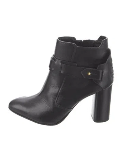 Tory Burch Leather Ankle Boots Black Semi-Pointed Toes Wrap-Around Straps & Concealed Zip Closure at Sides Designer Fit: This designer typically runs true to size. Unfortunately, due to restrictions, this item may not be eligible for shipping in all areas. | Tory Burch Leather Boots in Black, Women's US 5 | 5