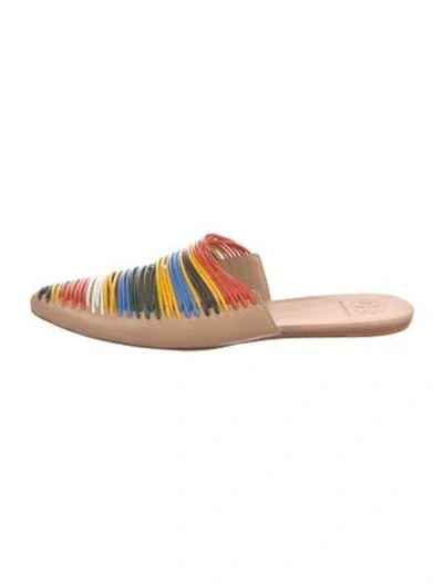 Tory Burch Leather Mules Neutrals & Orange Colorblock Pattern Semi-Pointed Toes Multistrap Designer Fit: This designer typically runs true to size. Unfortunately, due to restrictions, this item may not be eligible for shipping in all areas. | Tory Burch Leather Colorblock Pattern Mules in Neutrals/Orange, Women's US 8.5 | 8.5