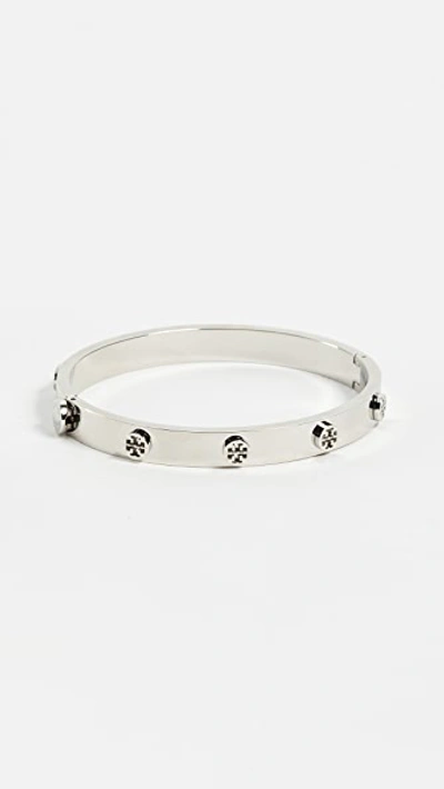 TORY BURCH Logo Stud Hinge Bracelet In Tory Silver