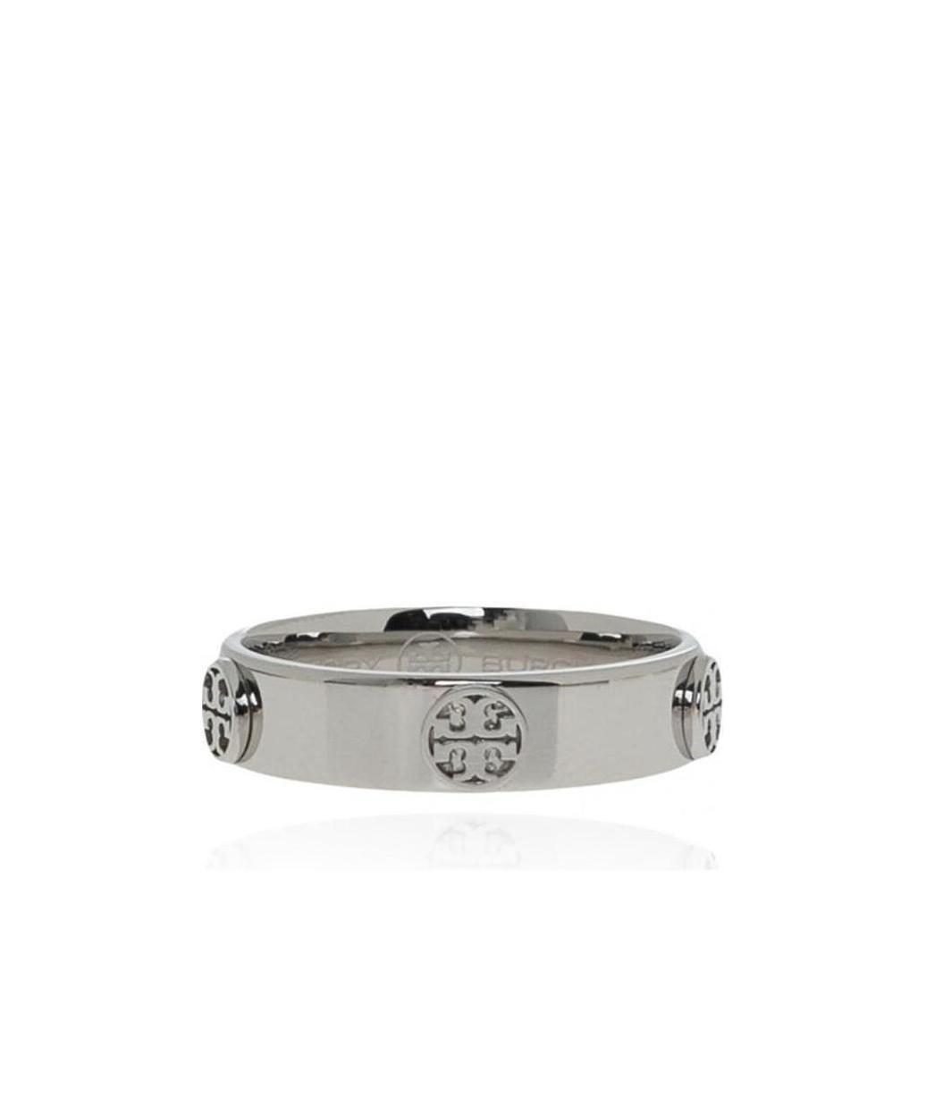 Silver-tone ring from Tory Burch. Made of stainless steel, this pieceof jewelry comes embossed with the label's logo.